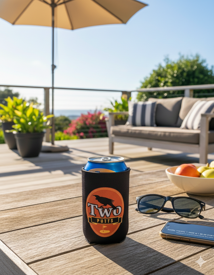 Stay refreshed on the course with the ParShark Two Putts Beer Koozie. Insulated neoprene cooler for 330–400ml cans and bottles — a funny golf accessory and perfect gift for Kiwi dads and golfers.